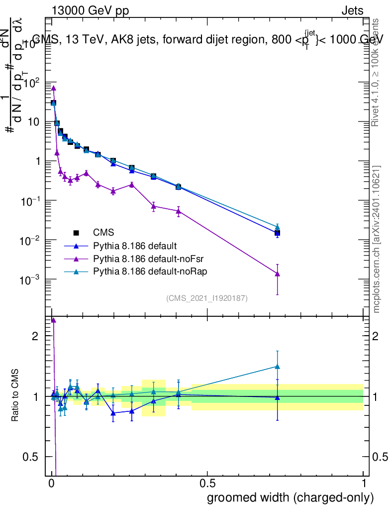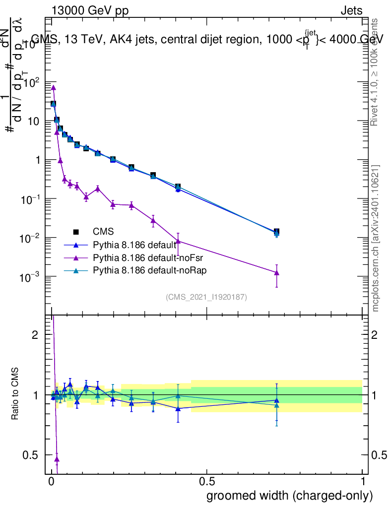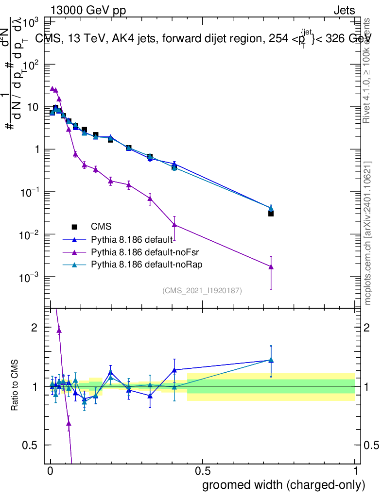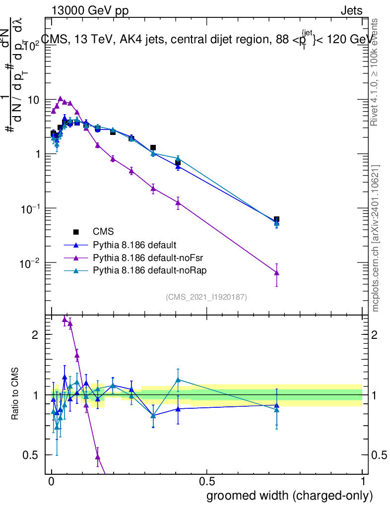 Jets : Generalized angularities : Groomed width λ11 (charged only)