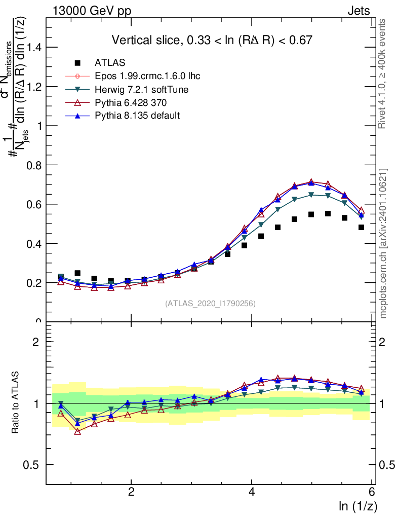 Jets : Lund jet plane : ln(1/z)