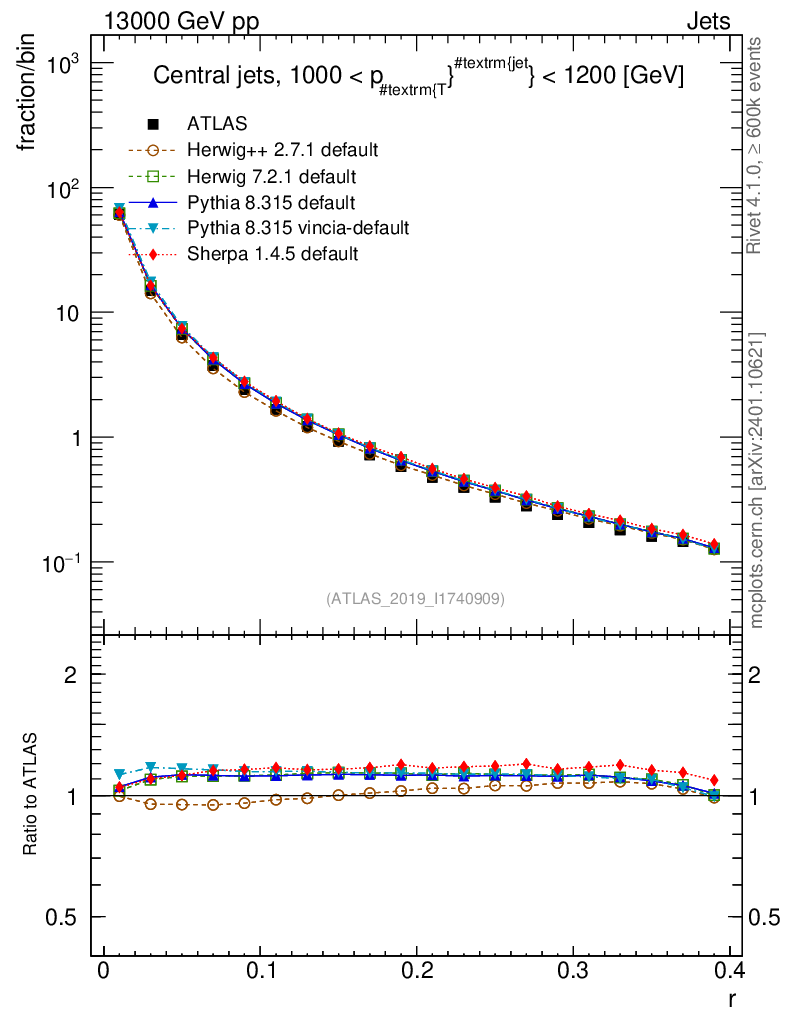 Herwig7 vs Sherpa