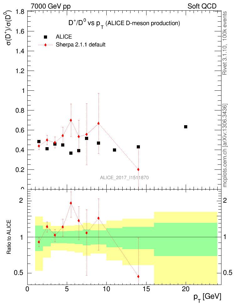 Soft QCD (inelastic) : Identified Particles : Ratios : D+/D0 vs pT