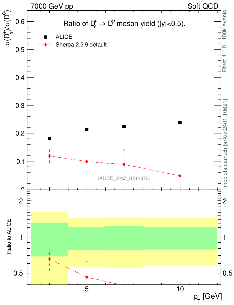 Soft QCD (inelastic) : Identified Particles : Ratios : Ds+/D0 vs pT