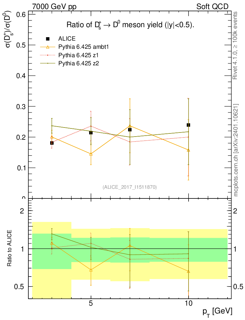 Soft QCD (inelastic) : Identified Particles : Ratios : Ds+/D0 vs pT