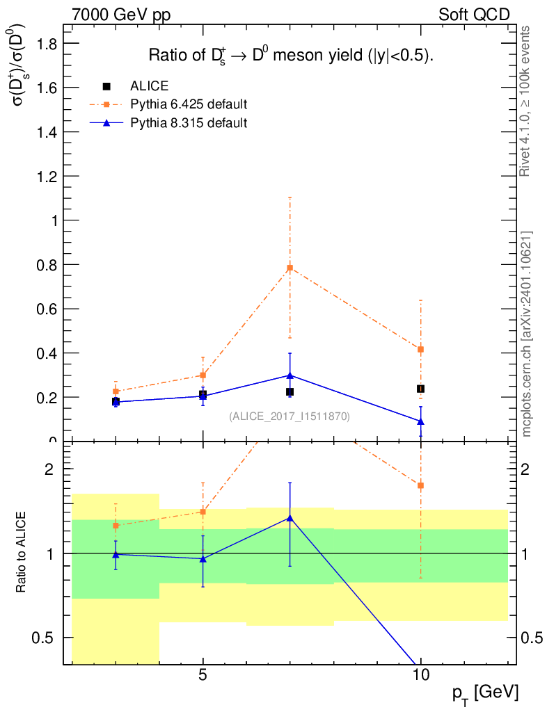 Soft QCD (inelastic) : Identified Particles : Ratios : Ds+/D0 vs pT