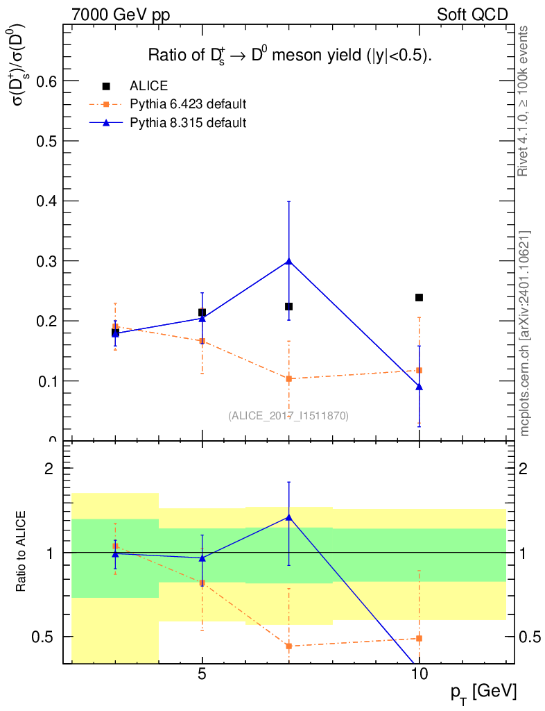 Soft QCD (inelastic) : Identified Particles : Ratios : Ds+/D0 vs pT