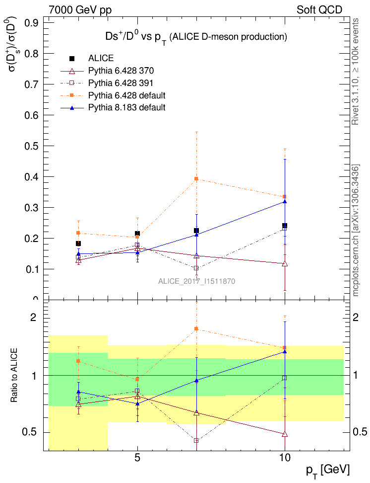 Soft QCD (inelastic) : Identified Particles : Ratios : Ds+/D0 vs pT