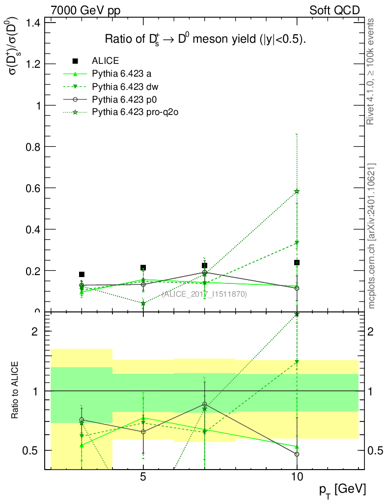 Soft QCD (inelastic) : Identified Particles : Ratios : Ds+/D0 vs pT
