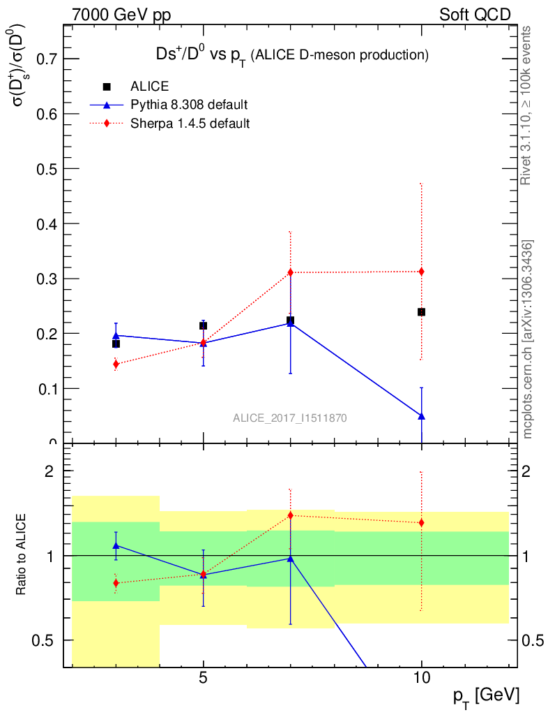 Soft QCD (inelastic) : Identified Particles : Ratios : Ds+/D0 vs pT