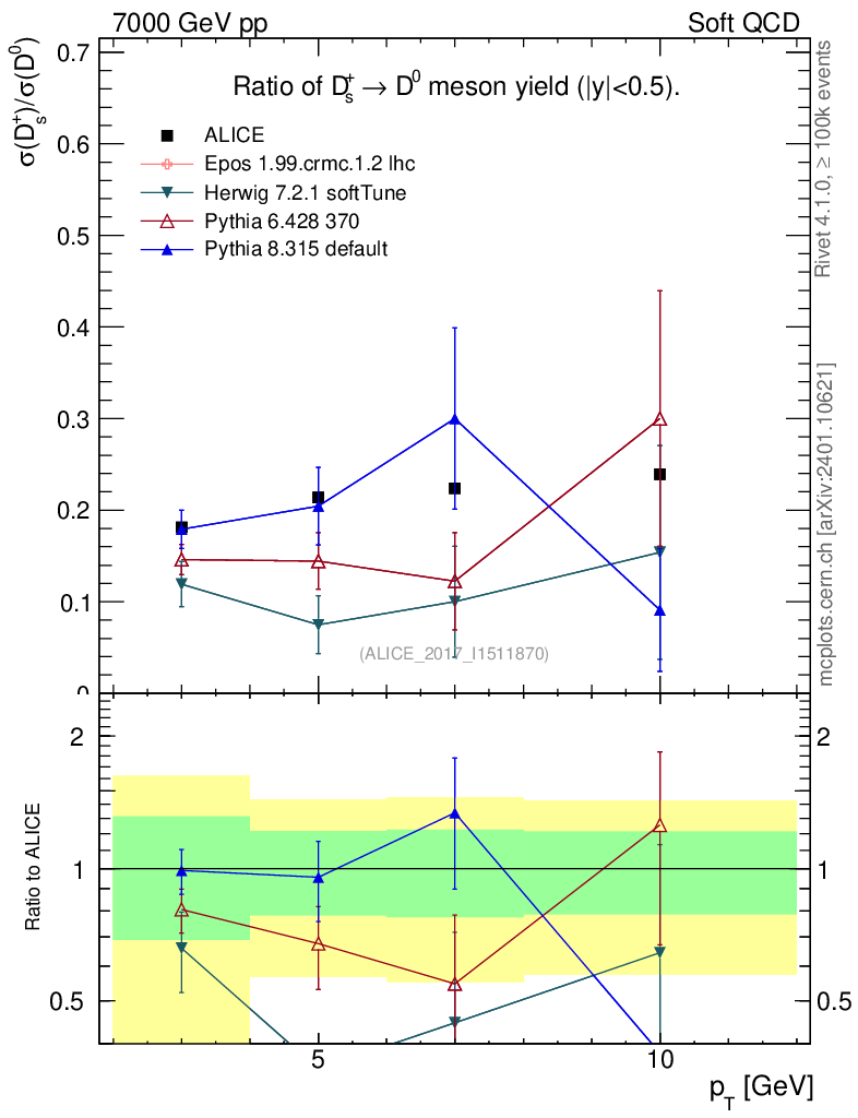 Soft QCD (inelastic) : Identified Particles : Ratios : Ds+/D0 vs pT