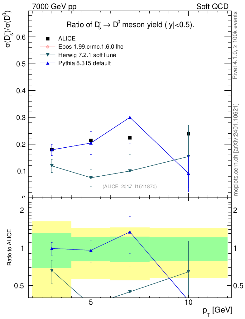 Soft QCD (inelastic) : Identified Particles : Ratios : Ds+/D0 vs pT