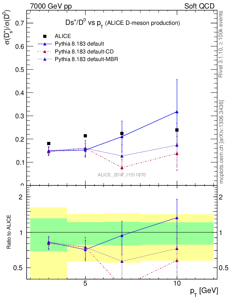 Soft QCD (inelastic) : Identified Particles : Ratios : Ds+/D0 vs pT