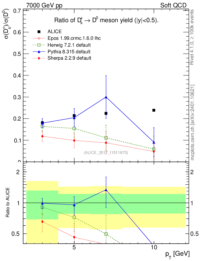 Soft QCD (inelastic) : Identified Particles : Ratios : Ds+/D0 vs pT