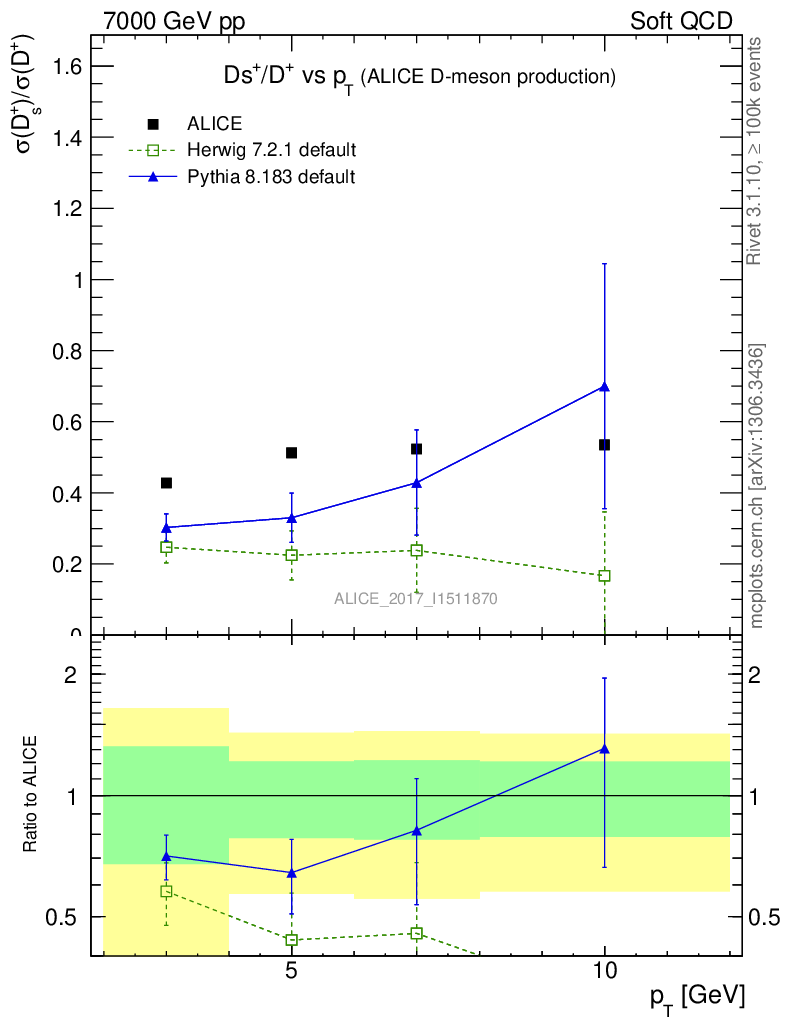 Soft QCD (inelastic) : Identified Particles : Ratios : Ds+/D+ vs pT