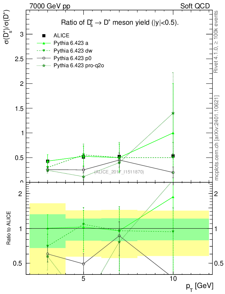 Soft QCD (inelastic) : Identified Particles : Ratios : Ds+/D+ vs pT
