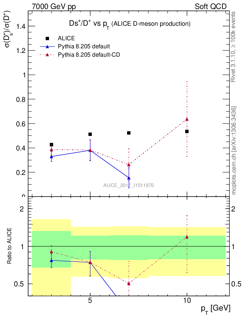 Soft QCD (inelastic) : Identified Particles : Ratios : Ds+/D+ vs pT