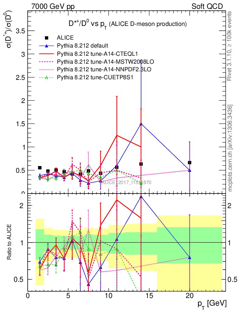 Soft QCD (inelastic) : Identified Particles : Ratios : D*+/D0 vs pT