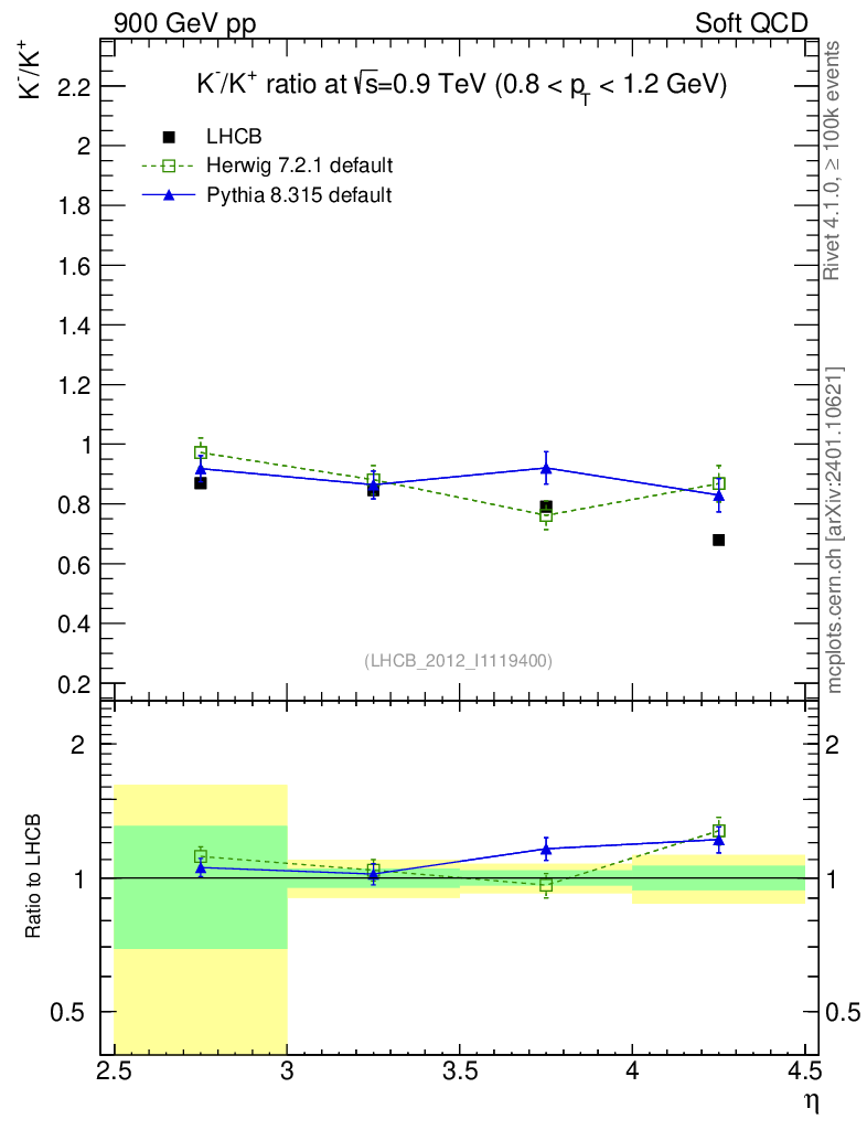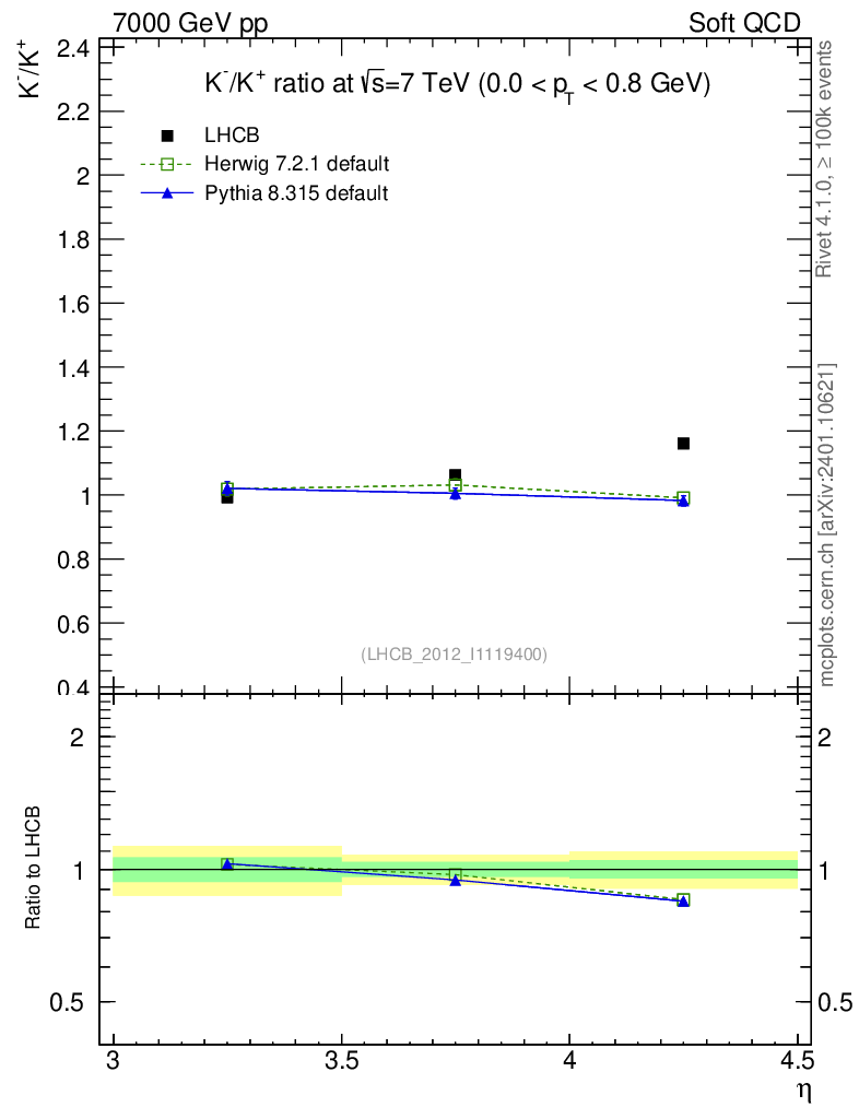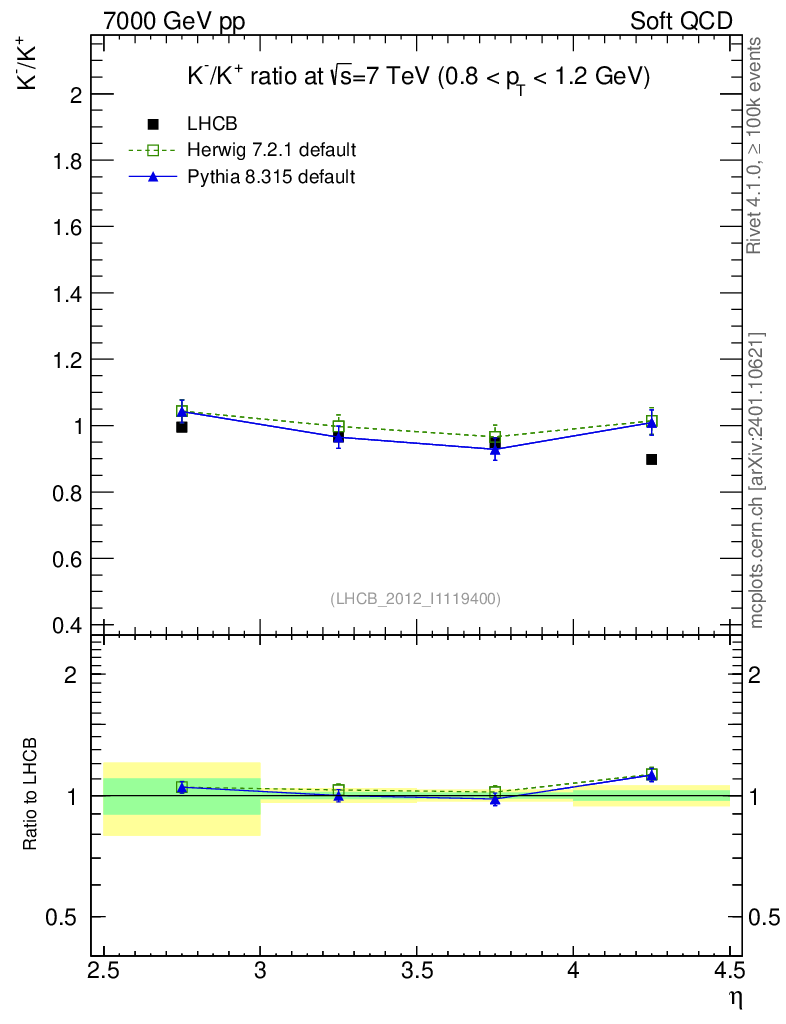 Soft QCD (inelastic) : Identified Particles : Ratios : K-/K+ vs |y|