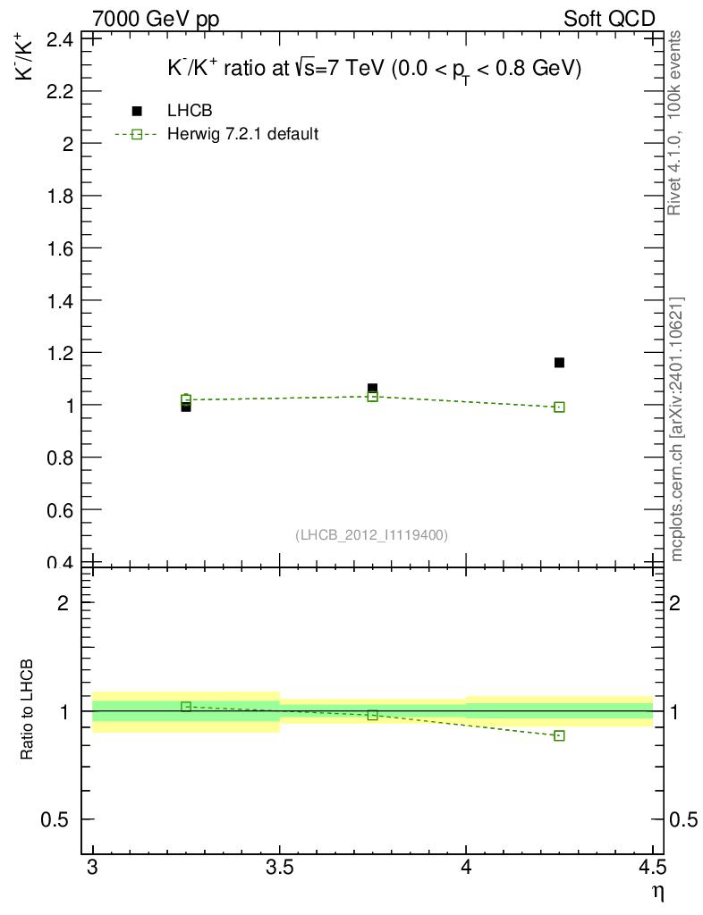 Soft QCD (inelastic) : Identified Particles : Ratios : K-/K+ vs |y|