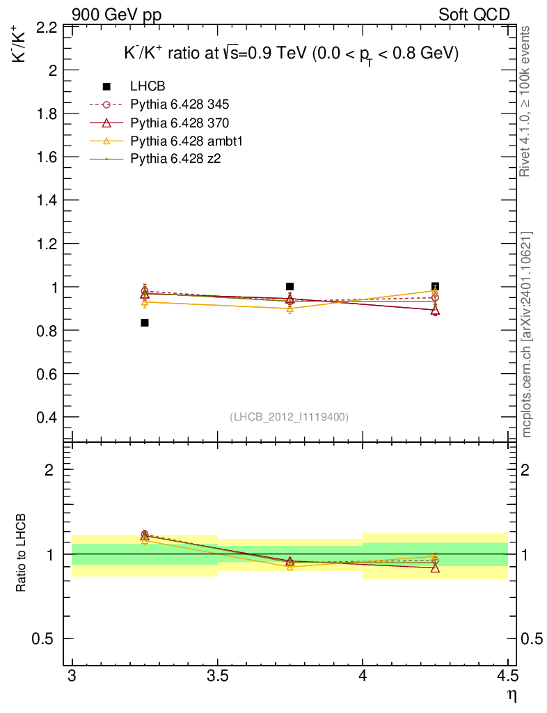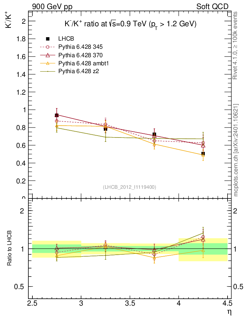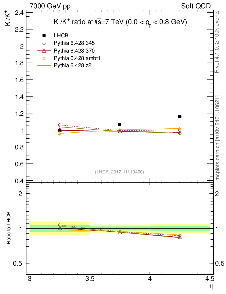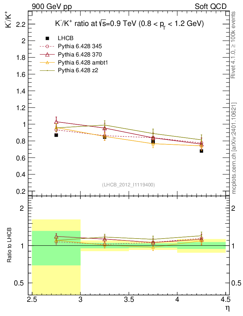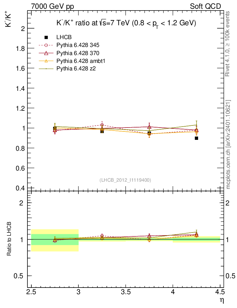 Soft QCD (inelastic) : Identified Particles : Ratios : K-/K+ vs |y|