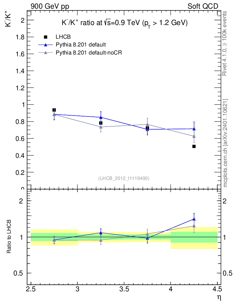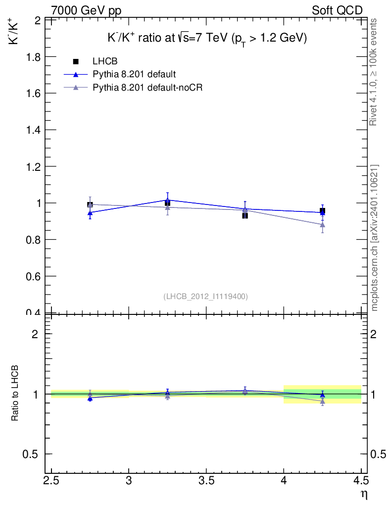 Soft QCD (inelastic) : Identified Particles : Ratios : K-/K+ vs |y|