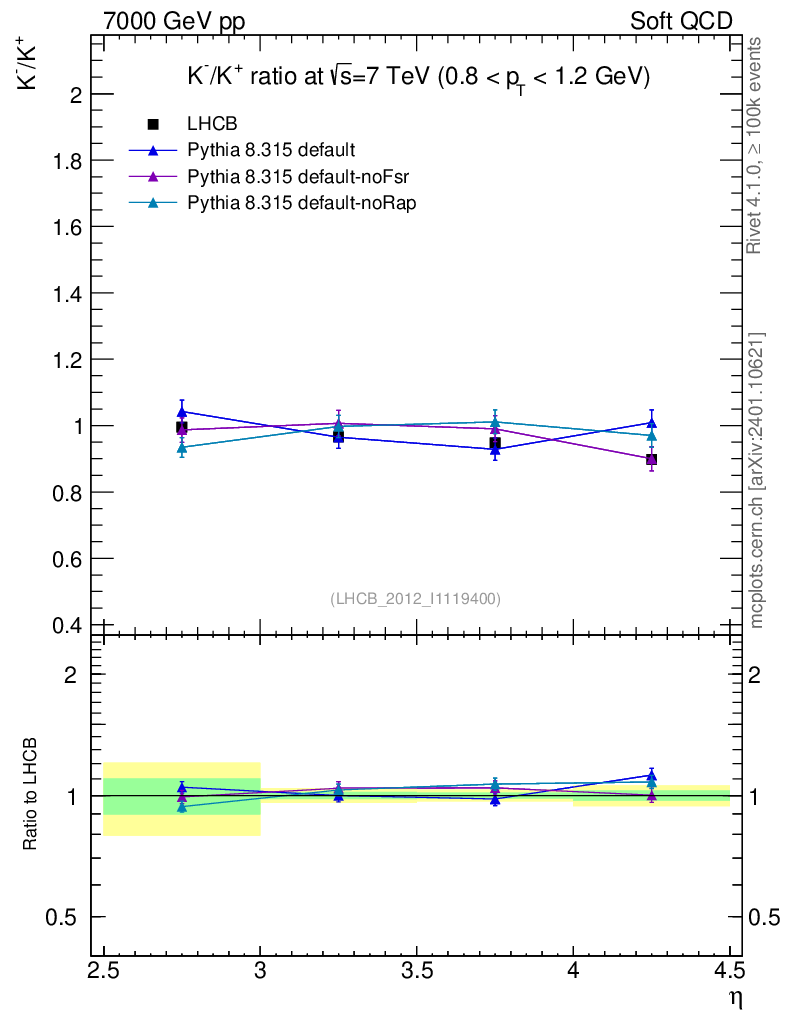 Soft QCD (inelastic) : Identified Particles : Ratios : K-/K+ vs |y|