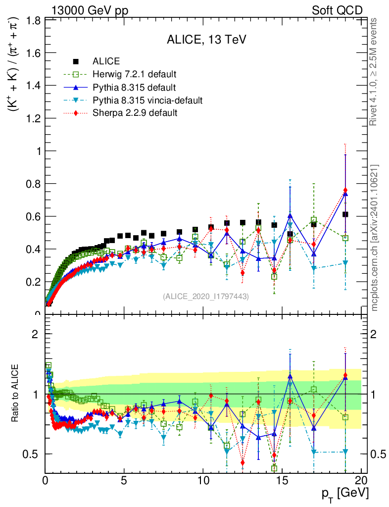Soft QCD (inelastic) : Identified Particles : Ratios : (K-+K+)/(π-+π+) vs pT