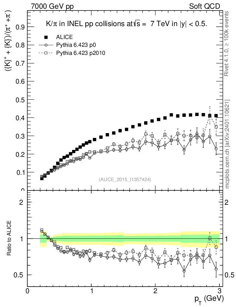 Soft QCD (inelastic) : Identified Particles : Ratios : (K-+K+)/(π-+π+) vs pT