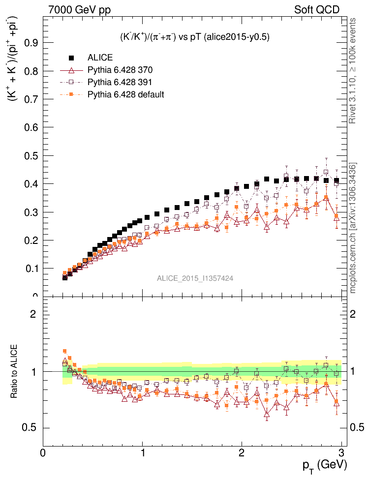 Soft QCD (inelastic) : Identified Particles : Ratios : (K-+K+)/(π-+π+) vs pT