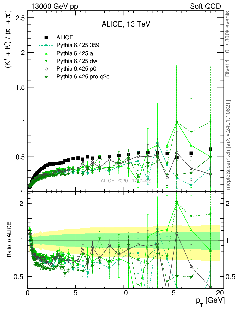 Soft QCD (inelastic) : Identified Particles : Ratios : (K-+K+)/(π-+π+) vs pT