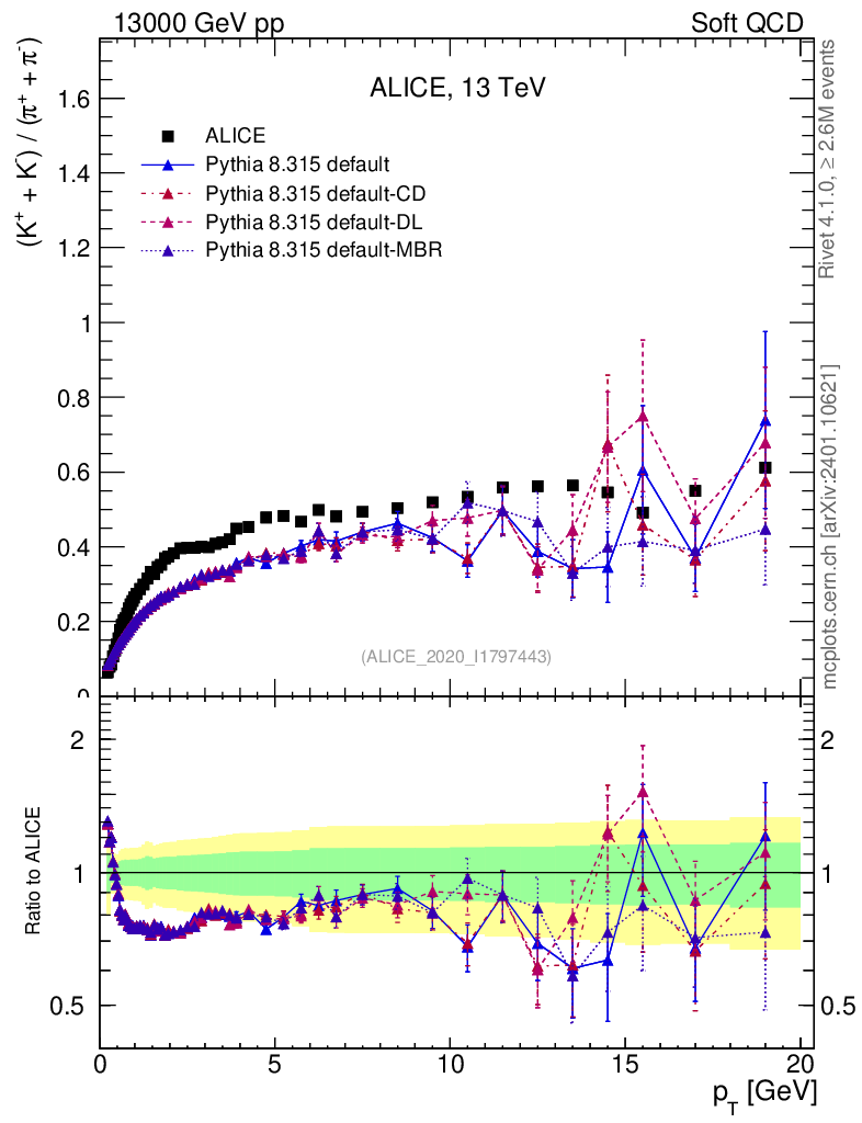 Soft QCD (inelastic) : Identified Particles : Ratios : (K-+K+)/(π-+π+) vs pT