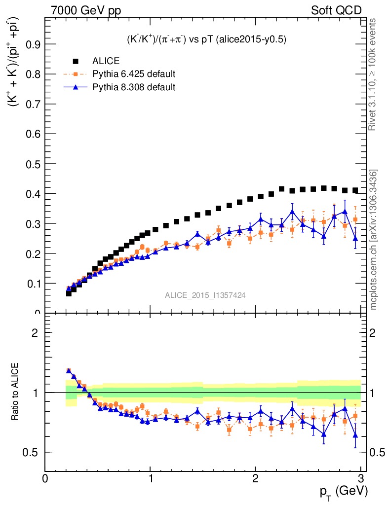 Soft QCD (inelastic) : Identified Particles : Ratios : (K-+K+)/(π-+π+) vs pT