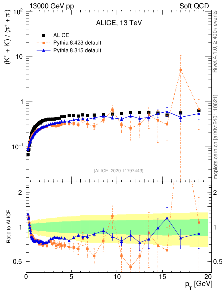 Soft QCD (inelastic) : Identified Particles : Ratios : (K-+K+)/(π-+π+) vs pT