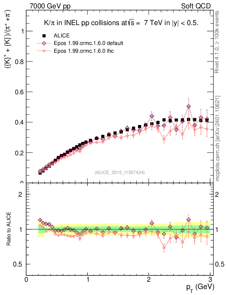 Soft QCD (inelastic) : Identified Particles : Ratios : (K-+K+)/(π-+π+) vs pT