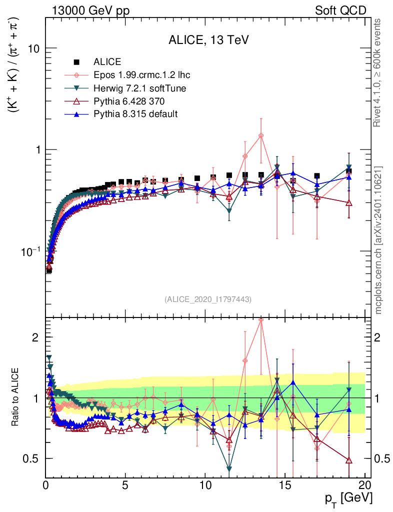 Soft QCD (inelastic) : Identified Particles : Ratios : (K-+K+)/(π-+π+) vs pT