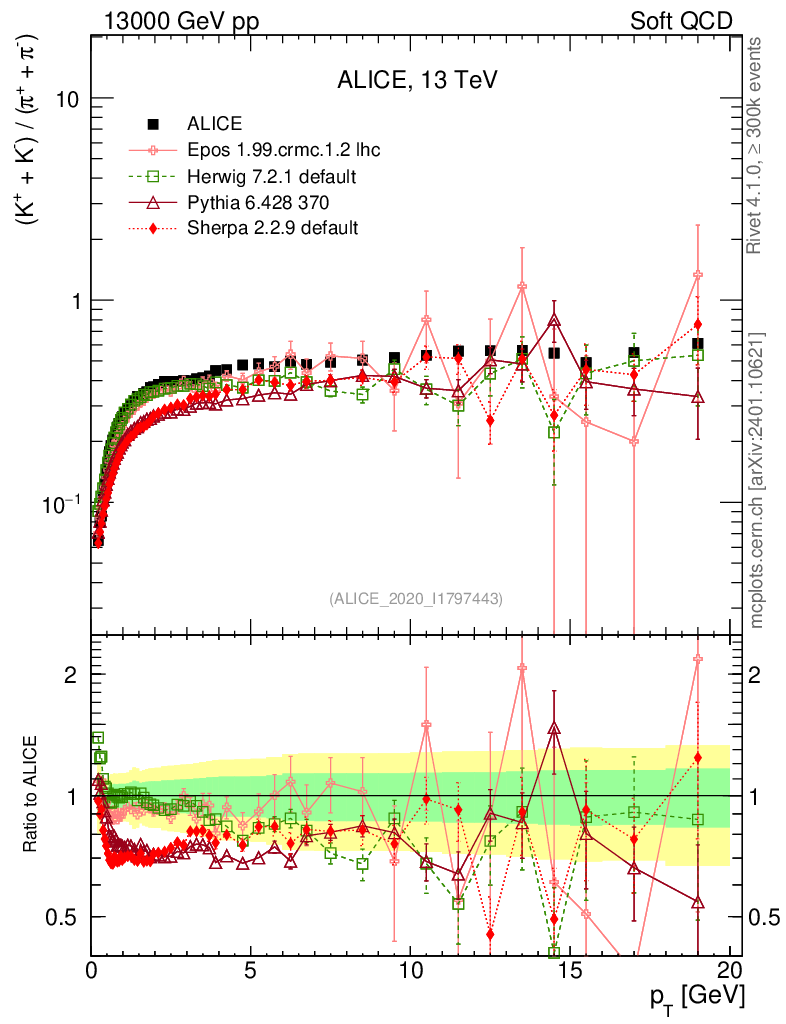 Soft QCD (inelastic) : Identified Particles : Ratios : (K-+K+)/(π-+π+) vs pT