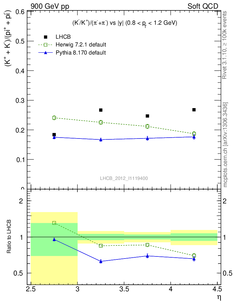 Soft QCD (inelastic) : Identified Particles : Ratios : (K-+K+)/(π-+π+) vs |y|