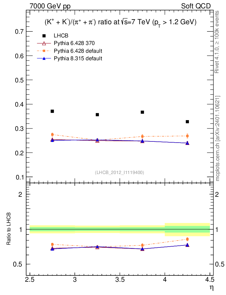 Soft QCD (inelastic) : Identified Particles : Ratios : (K-+K+)/(π-+π+) vs |y|