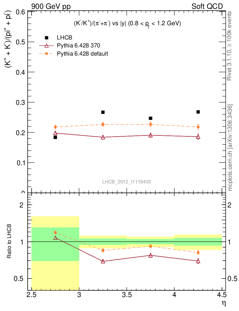Soft QCD (inelastic) : Identified Particles : Ratios : (K-+K+)/(π-+π+) vs |y|