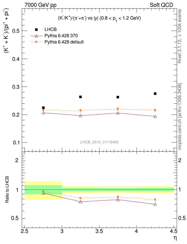 (K-+K+)/(π-+π+) vs |y|