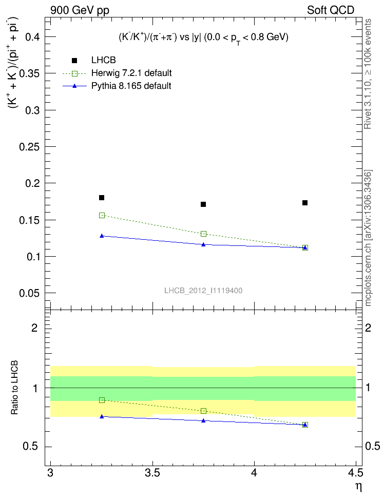 Soft QCD (inelastic) : Identified Particles : Ratios : (K-+K+)/(π-+π+) vs |y|