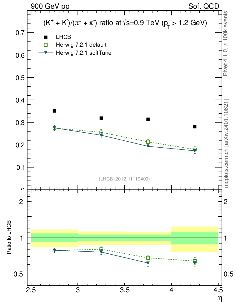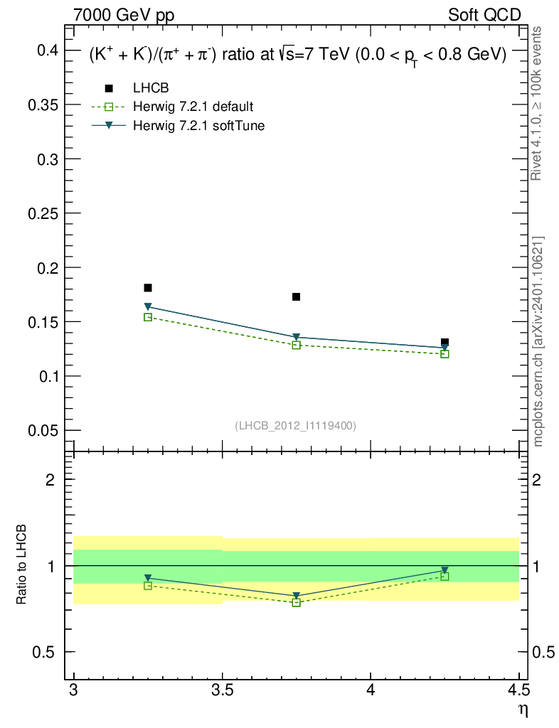 Soft QCD (inelastic) : Identified Particles : Ratios : (K-+K+)/(π-+π+) vs |y|