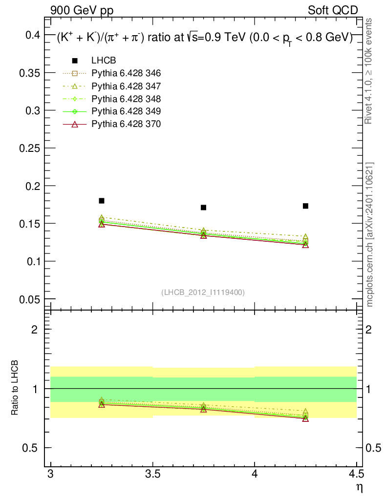 Soft QCD (inelastic) : Identified Particles : Ratios : (K-+K+)/(π-+π+) vs |y|