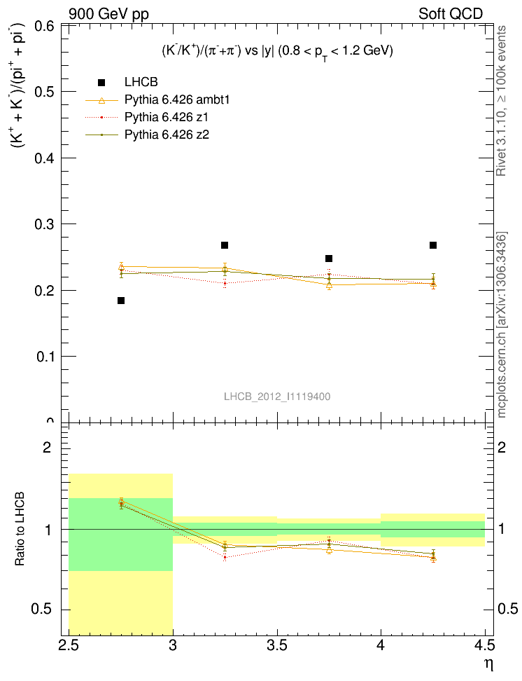 Soft QCD (inelastic) : Identified Particles : Ratios : (K-+K+)/(π-+π+) vs |y|