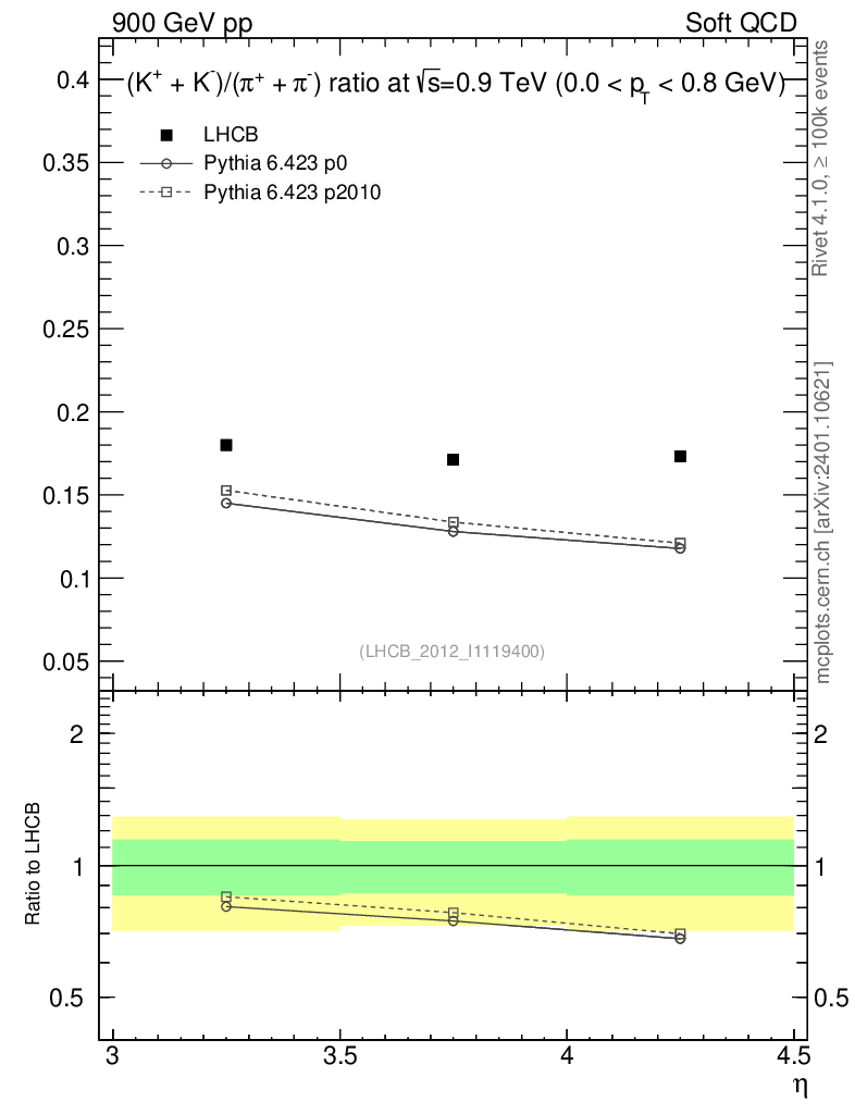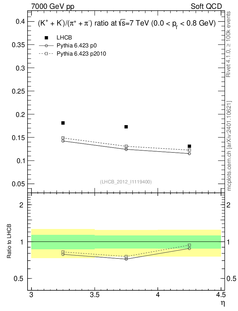 Soft QCD (inelastic) : Identified Particles : Ratios : (K-+K+)/(π-+π+) vs |y|