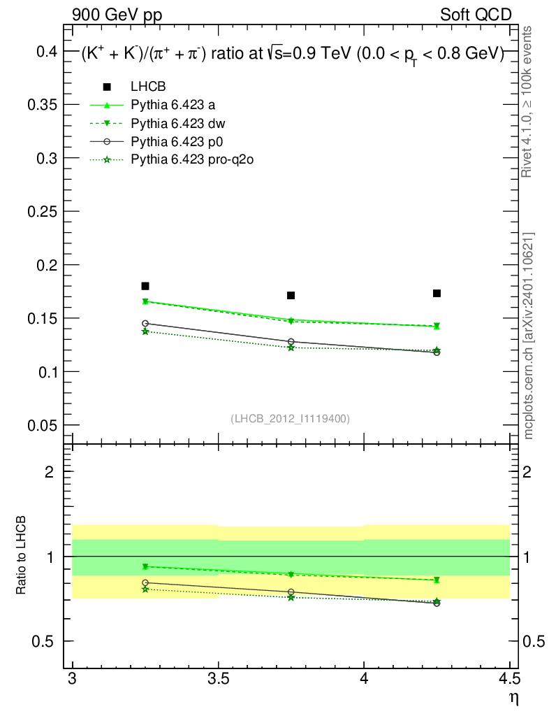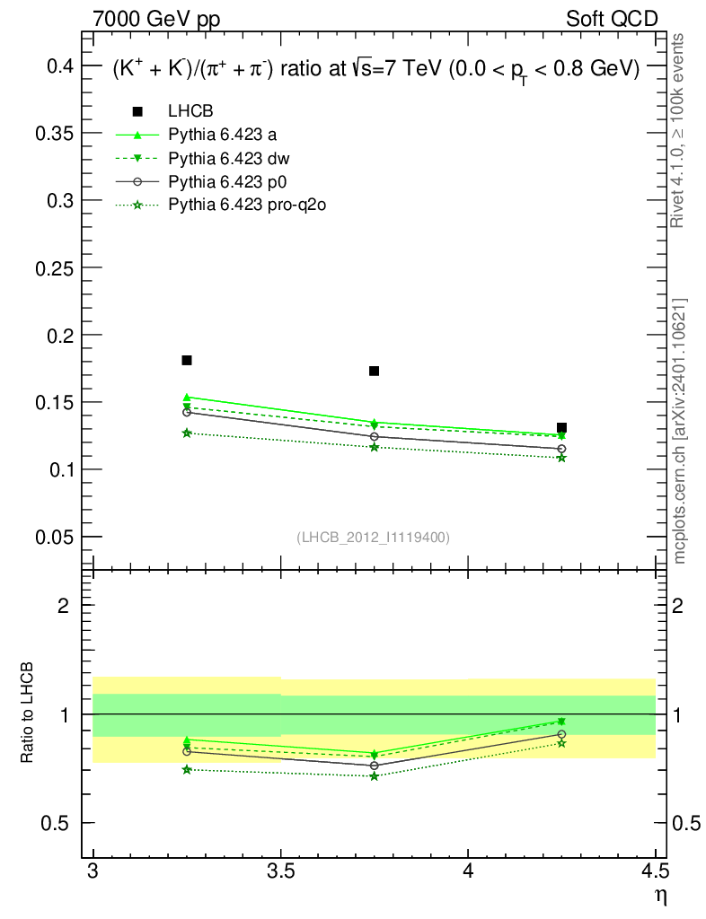 Soft QCD (inelastic) : Identified Particles : Ratios : (K-+K+)/(π-+π+) vs |y|