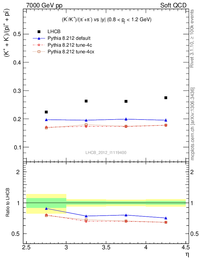 Soft QCD (inelastic) : Identified Particles : Ratios : (K-+K+)/(π-+π+) vs |y|