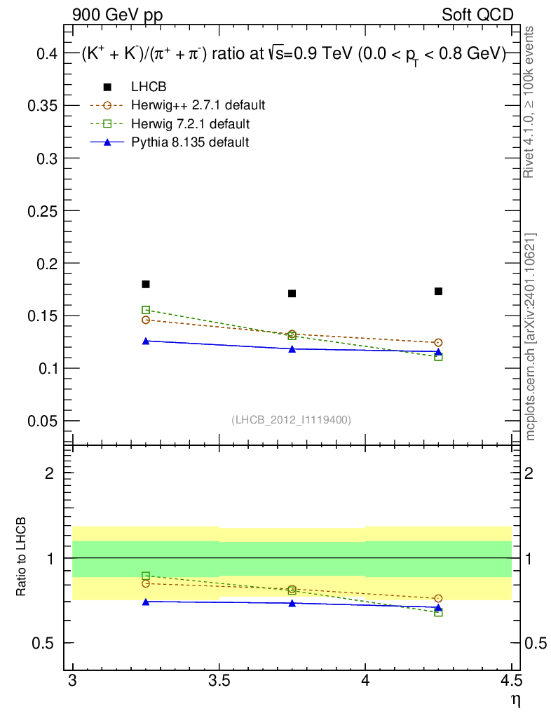 Soft QCD (inelastic) : Identified Particles : Ratios : (K-+K+)/(π-+π+) vs |y|