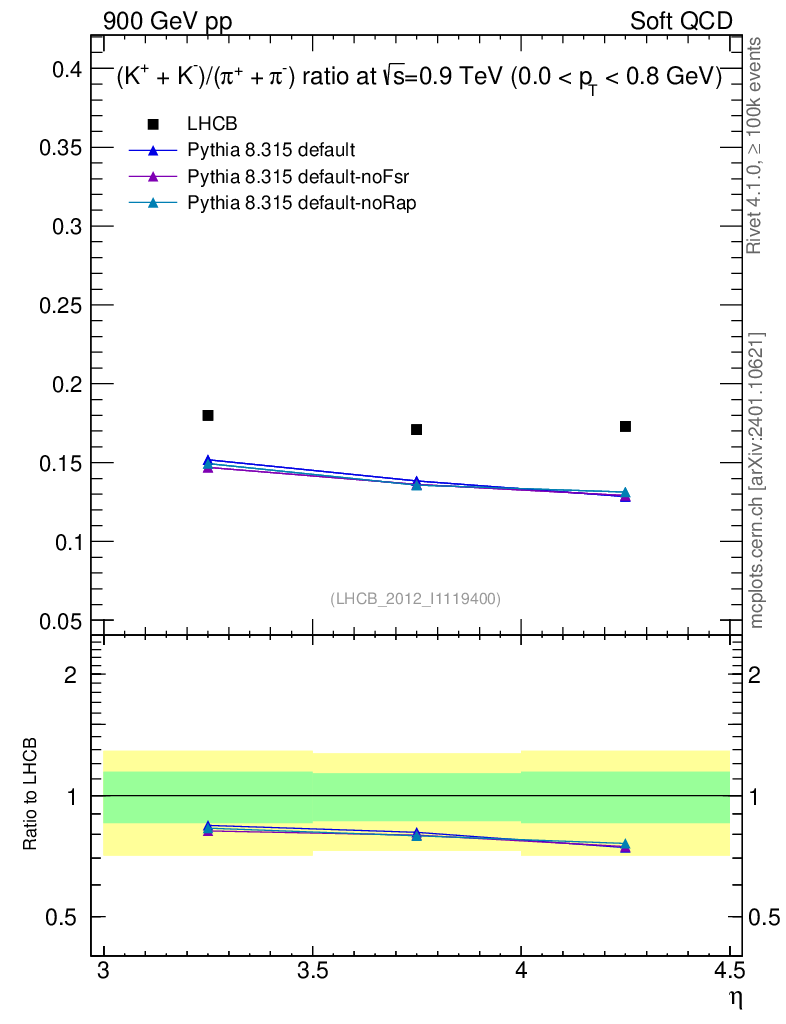 Soft QCD (inelastic) : Identified Particles : Ratios : (K-+K+)/(π-+π+) vs |y|