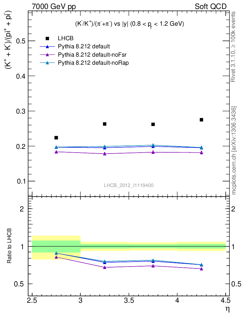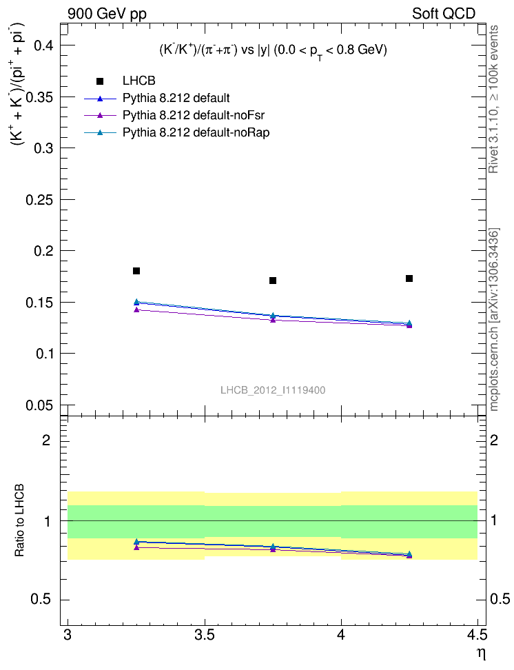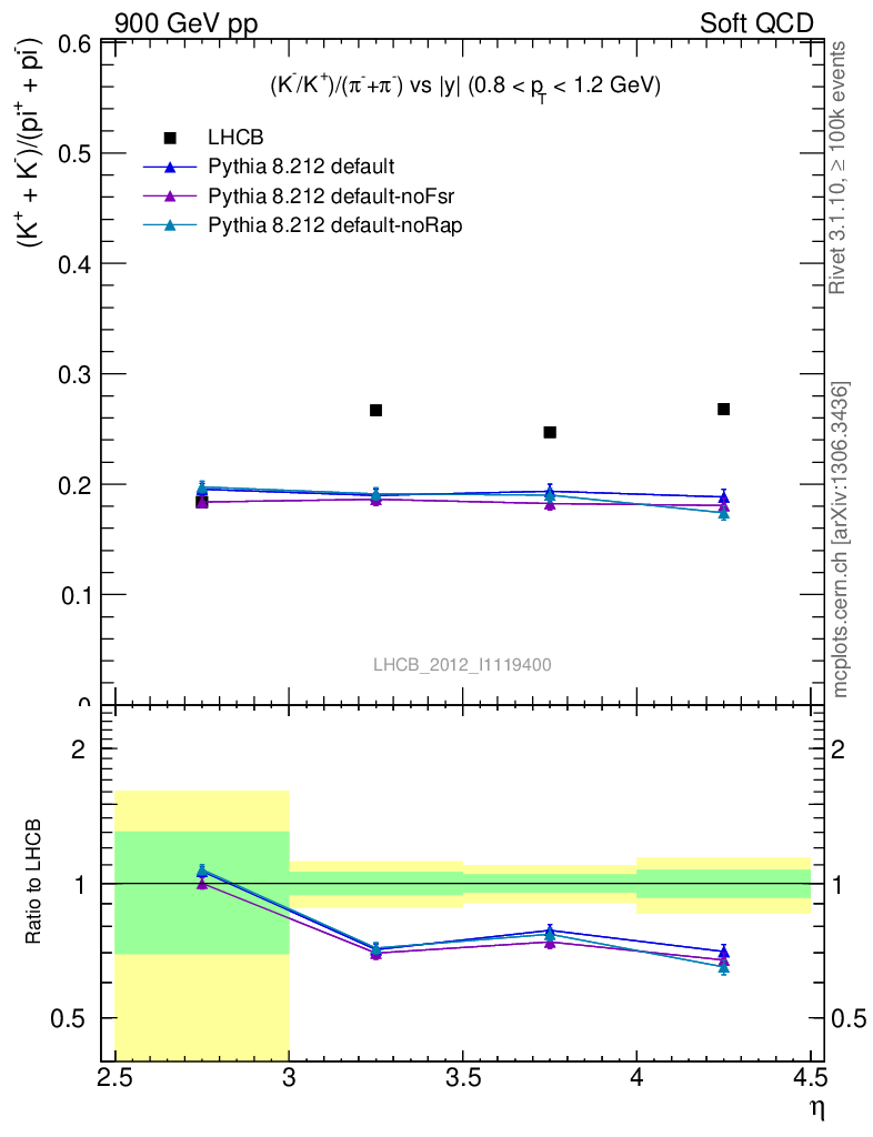 Soft QCD (inelastic) : Identified Particles : Ratios : (K-+K+)/(π-+π+) vs |y|