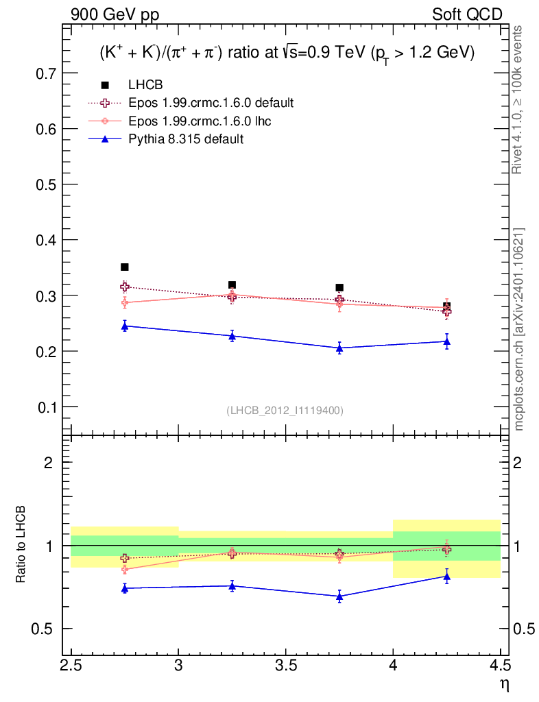 Soft QCD (inelastic) : Identified Particles : Ratios : (K-+K+)/(π-+π+) vs |y|