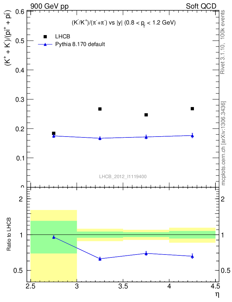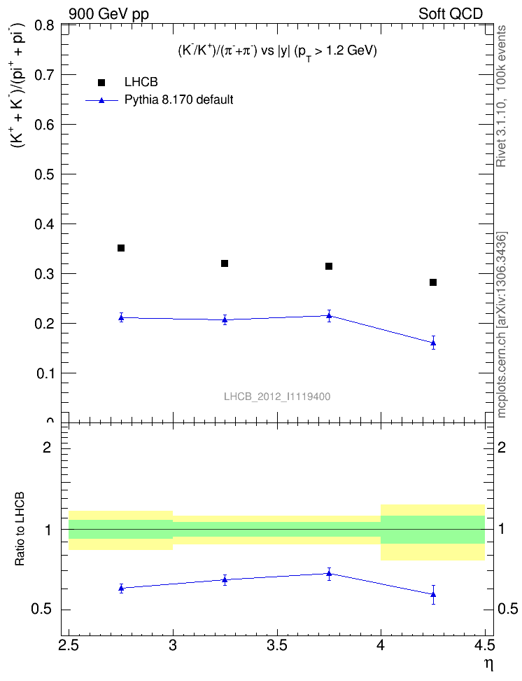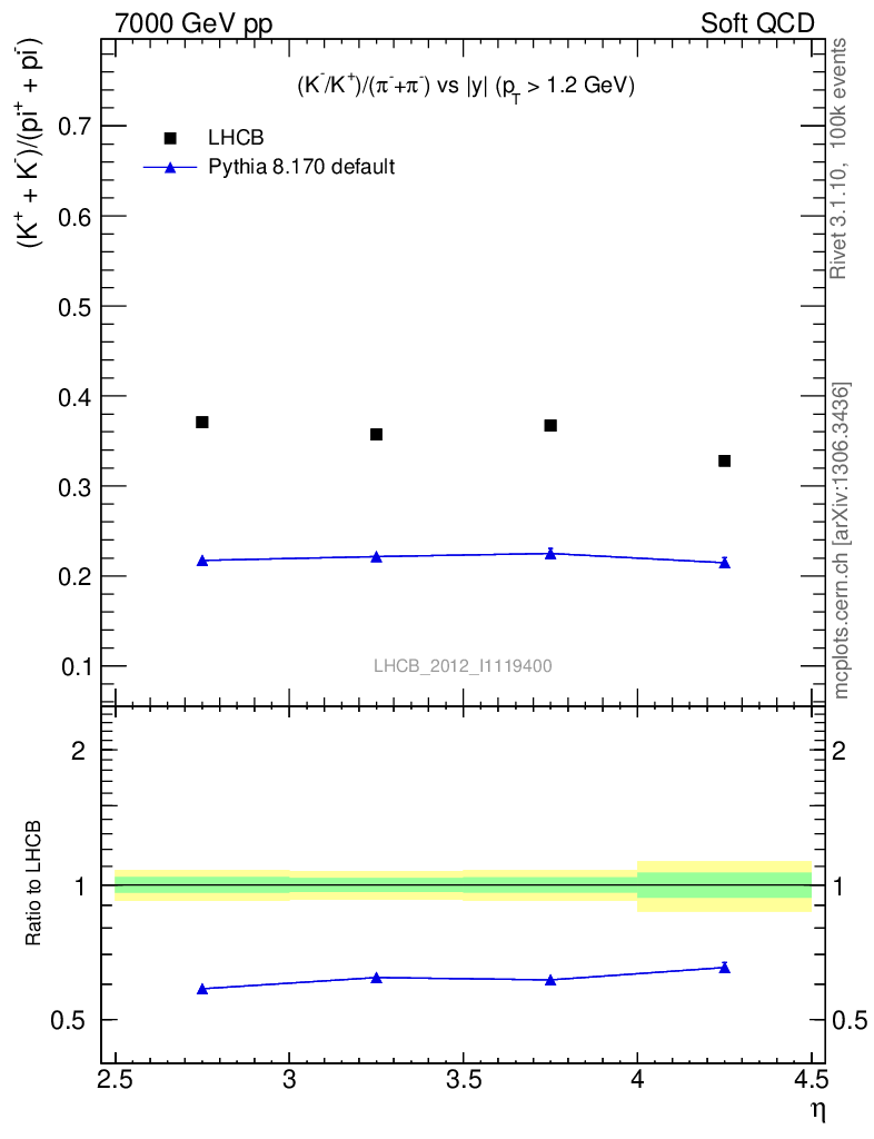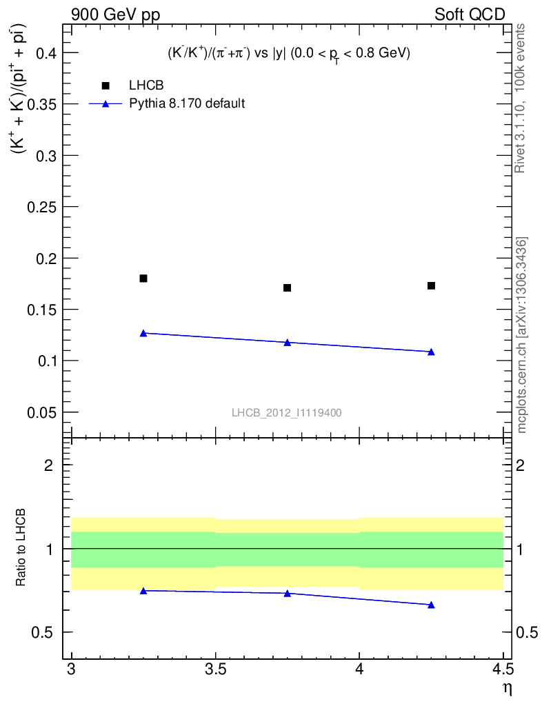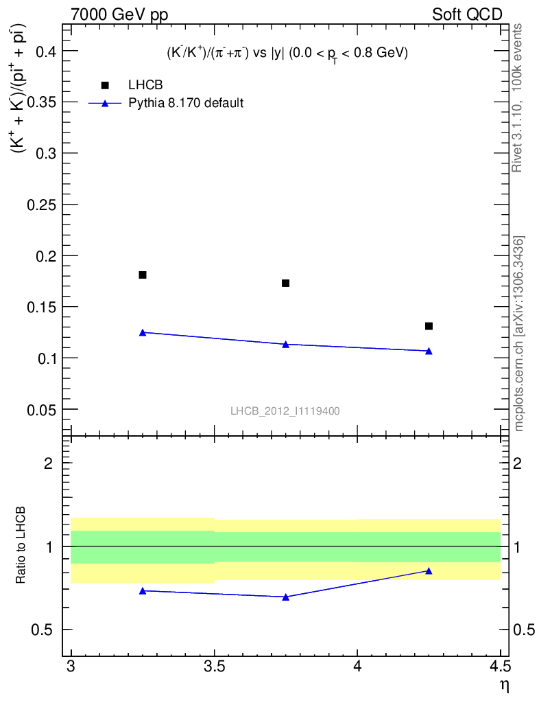 (K-+K+)/(π-+π+) vs |y|